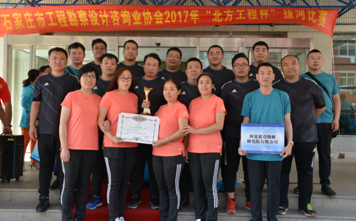 5月25日下午,石家莊市工程勘察設計咨詢業協會迎接石家莊解放七十周年暨向黨的十九大獻禮系 列活動之“北方工程杯”拔河比賽在北方工程設計研究院有限公司舉行。我公司經過精心組織、 認真準備,派出由15人組成的代表隊參戰。 比賽過程中,各隊隊員努力拼搏,無論是場上還是場下,氣氛都異常緊張,富有節奏的吶喊聲、 加油聲,充斥在場地上空,久久回蕩。我公司代表隊隊員們齊心協力,努力拼搏,經過四輪奮戰,從20支參賽隊伍中脫穎而出,取得了第三名的好成績。