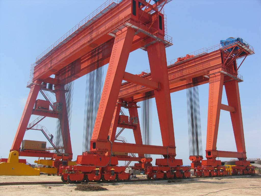 進行大型盾構機盾體和刀盤組裝的200噸龍門吊設備