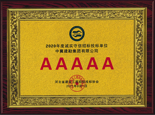 近日,公司被河北省建設(shè)工程招標投標協(xié)會評為2020年度河北省建設(shè)工程招標投標誠實守信5A級施工企業(yè)。