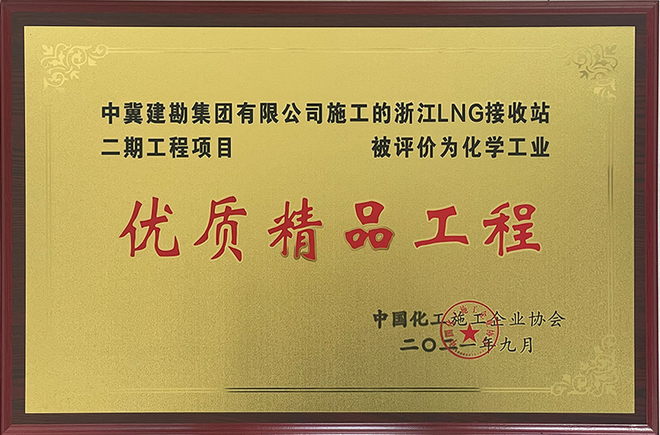 近日,由我公司承建的浙江LNG接收站二期儲(chǔ)罐樁基工程施工項(xiàng)目、廣西華誼能源化工有限公司工業(yè)氣體島項(xiàng)目?jī)身?xiàng)工程榮獲中國化工施工企業(yè)協(xié)會(huì)頒發(fā)的“優(yōu)質(zhì)精品工程”獎(jiǎng)。