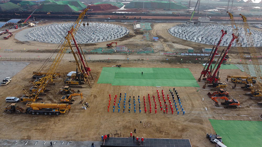 我公司承建的山東龍口中石化液化天然氣(LNG)項目接收站儲罐樁基工程,于2021年11月30日舉行了盛大的開工活動。集團公司李華偉總經理在基礎工程公司宋鵬波書記的陪同下應邀出席了本次開工活動。