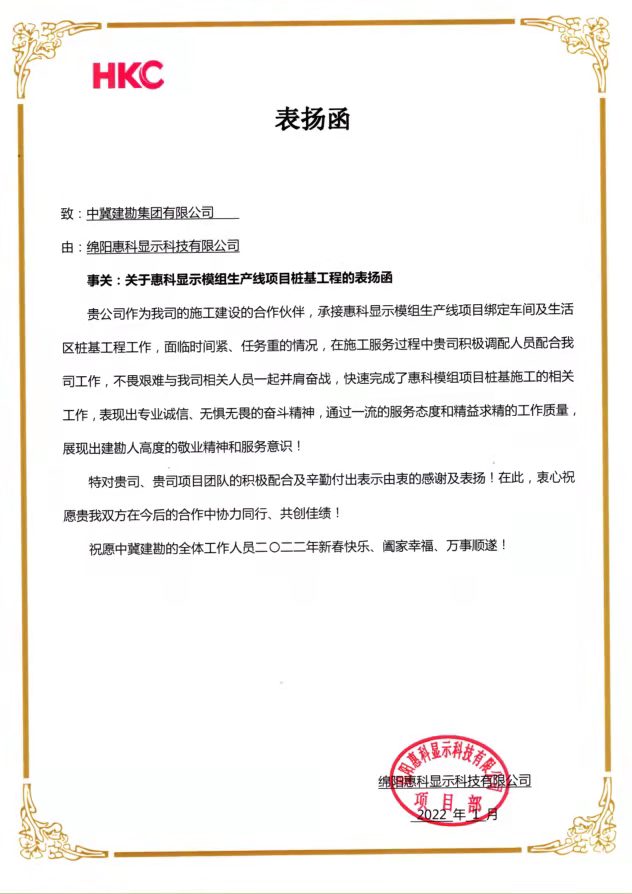 近期,公司連續收到業主及總包方發來的表揚信及榮譽稱號,對我公司所承擔的多個工程項目的生產組織、質量管控、安全文明施工等給予了充分肯定。