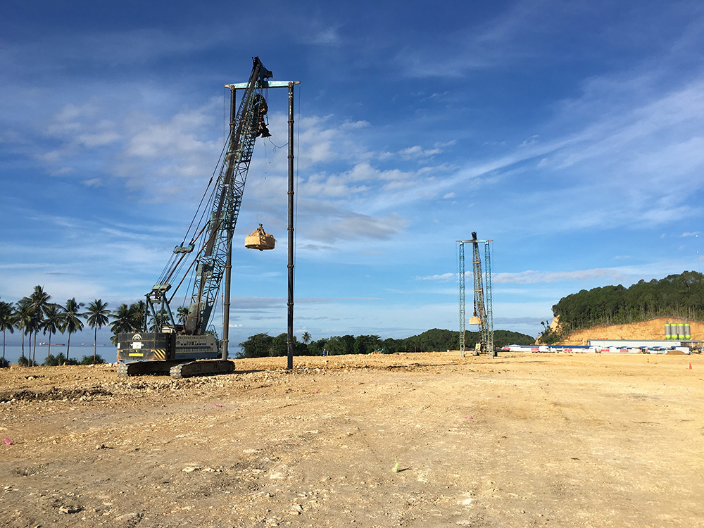 本項目位于印度尼西亞東加里曼丹省,由PT.KOBEXINDO CEMENT投資建設,我公司負責本項目強夯施工。施工地層由人工填土層、粘土、粉質粘土、細砂、石灰巖組成。