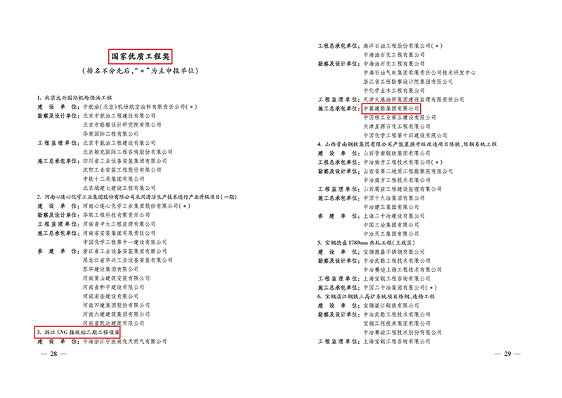 12月9日,中國施工企業管理協會發布了《關于表彰2022-2023年度國家優質工程獎的決定》(中施企協字[2023]124號),我公司參與建設的3項工程獲得國家優質工程獎,其中1項工程獲得國家優質工程金獎。