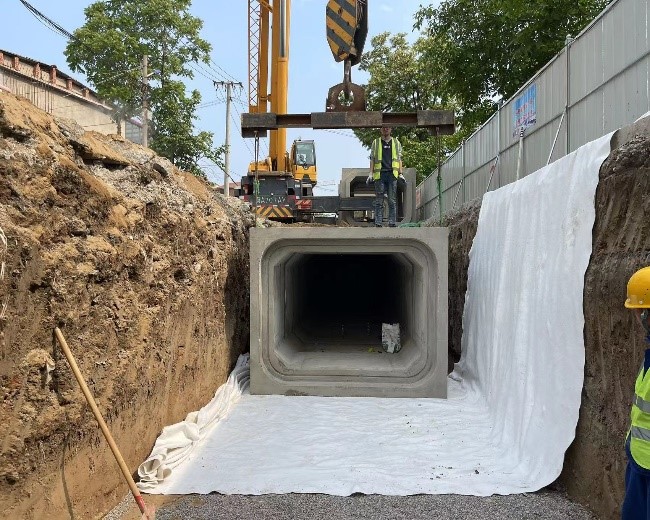 本工程主要施工特點是在保證周邊居民正常生活排水的前提下,在淤泥質粉土地層中通過開槽法進行雨污水管道安裝施工。工程于2023年4月20日開工,12月15日完工。通過對淤泥質粉土地層的加固處理以及管道安裝施工、接縫處理、回填處理和路面基層施工處理,歷時239天,圓滿完成合同任務,經第三方檢測,合格率100%。目前申報了三項實用新型專利,一項實用新型工法。