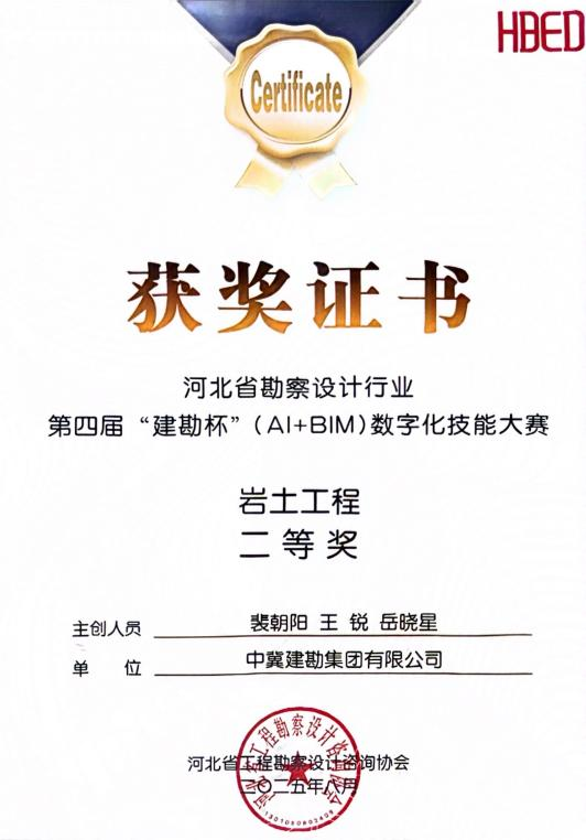 集團(tuán)公司榮獲第四屆“建勘杯”(AI+BIM)數(shù)字化技能大賽兩個(gè)獎(jiǎng)項(xiàng)