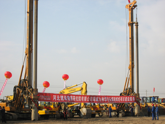 神華包頭煤制烯烴項目工業廠址位于包頭市九原區哈林格爾鎮西南,由包頭煤化工有限公司籌建,一期建設規模為180萬噸/年甲醇及相應的公用工程、輔助生產設施。樁基工程自2007年9月23日開工,至2008年5月16日竣工,采用后壓漿旋挖鉆孔灌注樁,設計樁徑為Φ800mm,樁長為14.1~35.2m。共施工基樁3294根,設計混凝土方量為46989.9m3,實際灌注方量52128.1m3,樁身砼強度等級為C30、C35兩種。