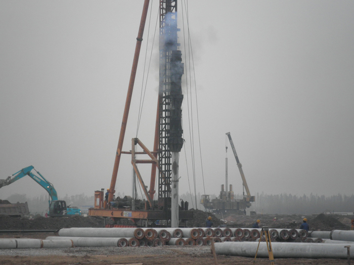 本工程我公司共完成樁徑Φ400mm、樁長18~27m的PHC管樁601根,共計約14976延米;樁徑Φ500mm、樁長23~32m的PHC管樁826根,共計約22039延米;樁徑Φ400mm、樁長15.6~21.6m的CFG樁537根,理論方量1360m3,實(shí)際方量為2029m3。
